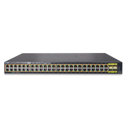 PLANET GS-4210-48P4S is a cost-optimized, high-density PoE+ Managed Gigabit Ethernet Switch featuring PLANET intelligent PoE functions to improve the availability of critical business applications. It provides IPv6/IPv4 dual stack management and built-in L2/L4 Gigabit switching engine along with 48 10/100/1000BASE-T ports featuring 36-watt 802.3at PoE+ and 4 additional Gigabit SFP slots. With a total power budget of up to 400 watts for different kinds of PoE applications, it provides a quick, safe and cost-effective Power over Ethernet network solution for small businesses and enterprises.